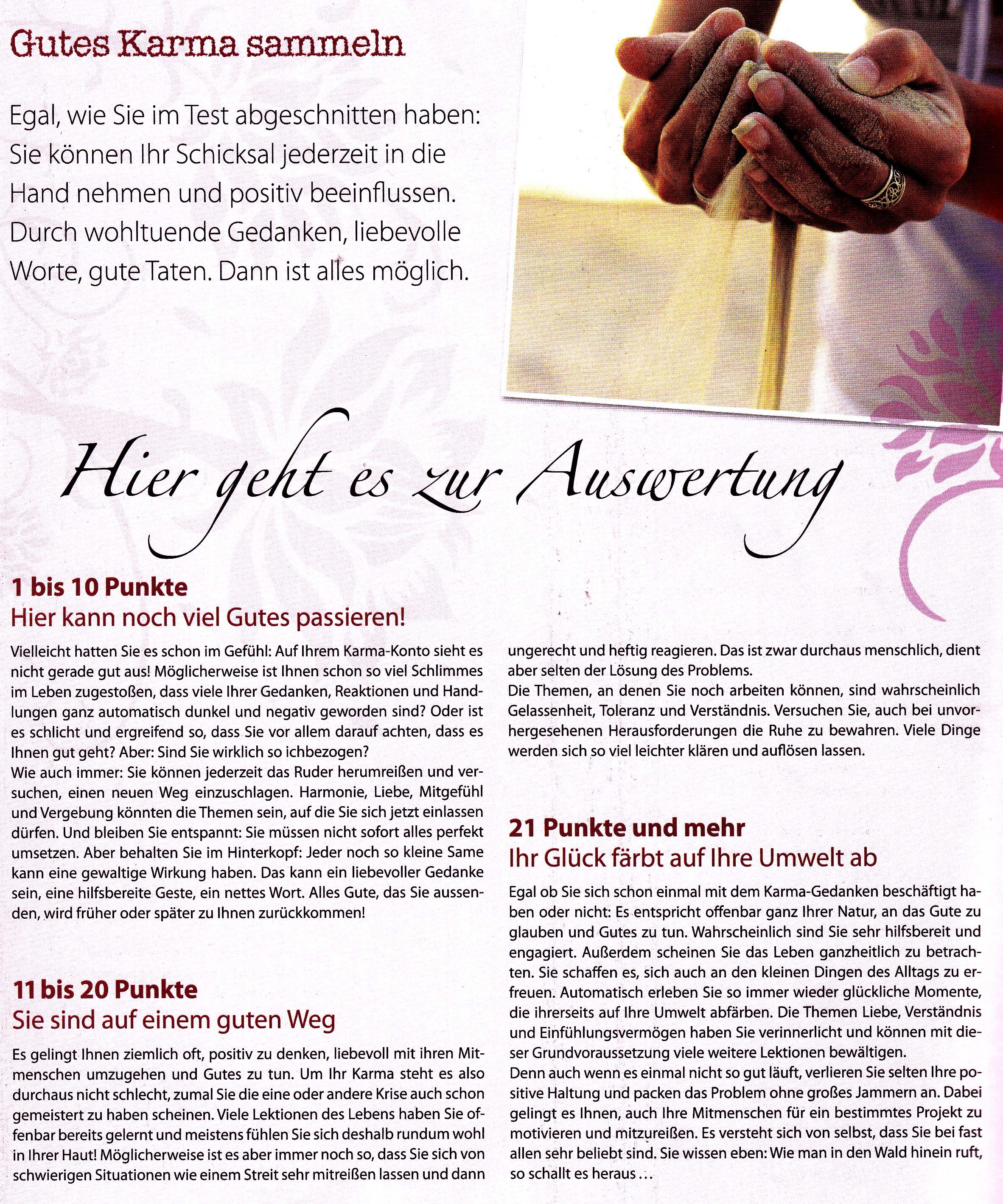 Ein gütiges Karma hat mich nun mit dieser karmisch so hoch entwickelten Blüte deutscher Printmedien in Kontakt gebracht. Ist das nicht die Vorsehung? Ist das nicht ein Glück, welches ich mir in früheren Leben erarbeitet habe, daß ich nun endlich verstehen darf, wie leicht es ist Karma zu verstehen?